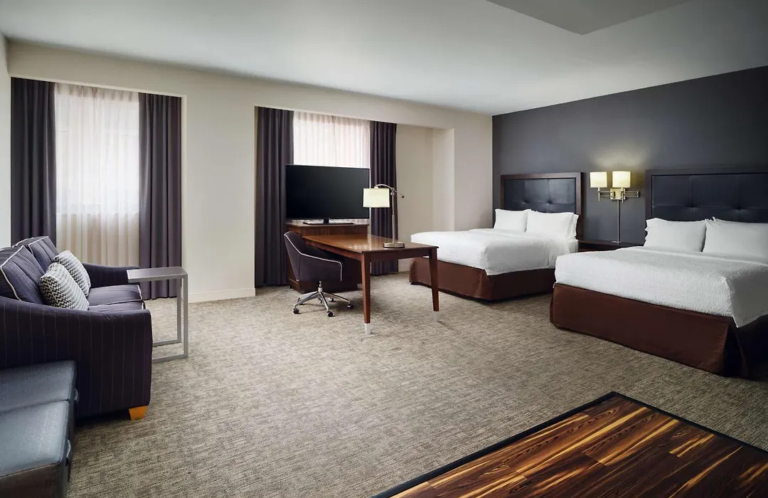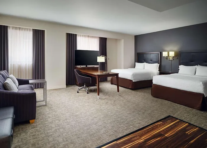 Rooms at Hampton Inn & Suites - Richmond - Downtown include flat-screen TVs, tea and coffee facilities, and free Wi-Fi. The hotel offers a range of accommodation options, including connecting rooms and studios, some equipped with a seating area.