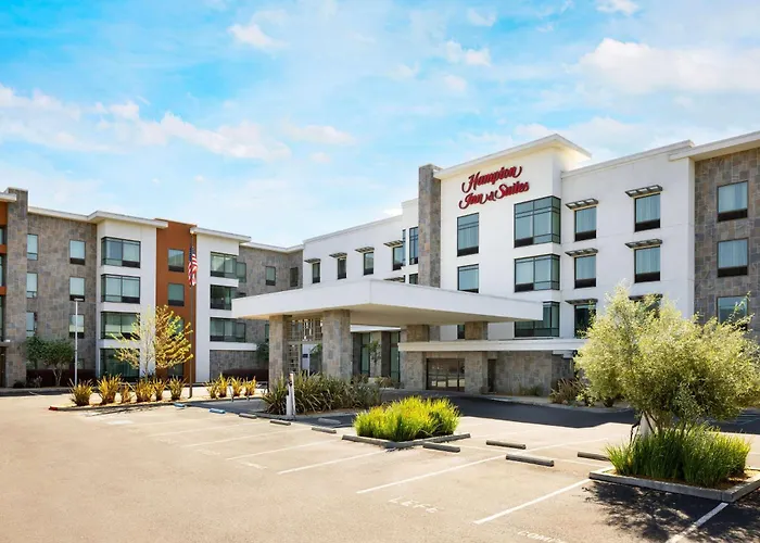 Hampton Inn & Suites - Napa, CA offers a comfortable stay with a 3-star rating and an 8.4/10 booking score. The hotel features an outdoor pool, hot tub, and complimentary hot breakfast, making it suitable for both leisure and business travelers. Guests benefit from free WiFi throughout the property.