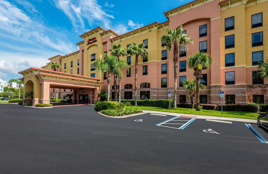 Hampton Inn & Suites Orlando-South Lake Buena Vista is a modern 3-star hotel in Kissimmee that features an outdoor pool and offers a scheduled shuttle service to Walt Disney World Resort, just 3.7 miles away. The hotel includes amenities such as a free hot breakfast buffet and a fitness center.