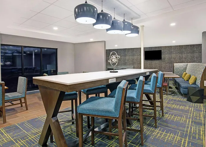 The hotel provides a free hot breakfast featuring favorites like fresh-baked waffles. Nearby restaurants include various dining options outside the hotel, enhancing guests' culinary choices during their stay.