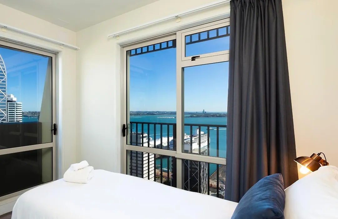 Auckland Harbour Suites, a 4-star self-serviced apartment hotel, features 150 rooms with sweeping views of Waitemata Harbour and the Auckland City skyline. Guests can enjoy amenities such as an outdoor pool, gym, and a range of dining options nearby, situated in the heart of Auckland's Central Business District.