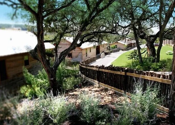 Hideout On The Horseshoe is a 3-star hotel with a unique 19-cabin property overlooking the Guadalupe River and scenic Hill Country. This Canyon Lake hotel offers amenities such as free WiFi, on-site barbecue grills, and a children's playground, catering to family and outdoor enthusiasts.