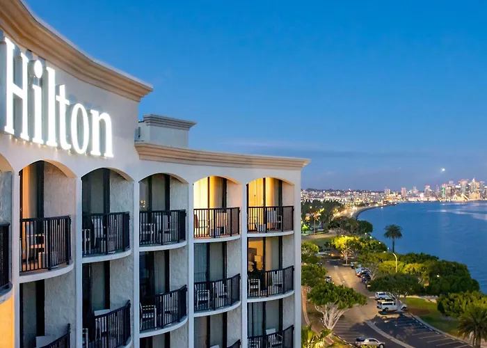 Hilton San Diego Airport/Harbor Island, rated 8.2/10 on Booking.com, is a non-smoking waterfront hotel offering scenic marina and skyline views. The hotel features an outdoor heated pool, fitness center, and complimentary airport shuttle.