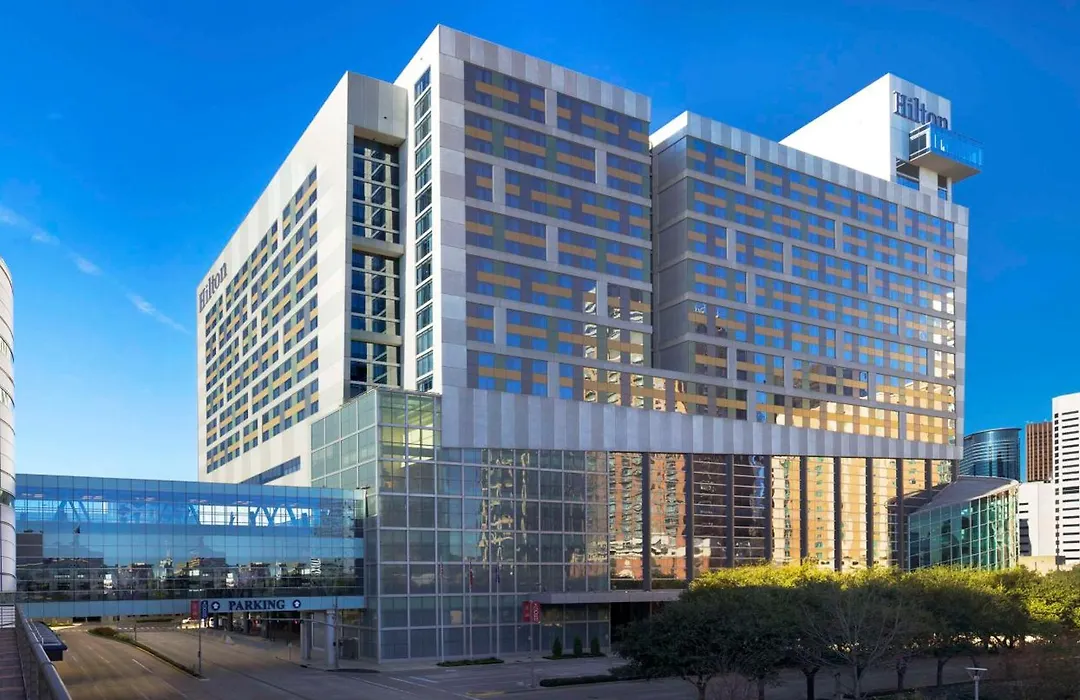 Hilton Americas - Houston is a 4-star hotel offering 1207 rooms and suites, versatile meeting spaces, and a full-service spa. The property boasts amenities like the largest Starbucks in Texas, two on-site restaurants, and a rooftop infinity pool with city views.