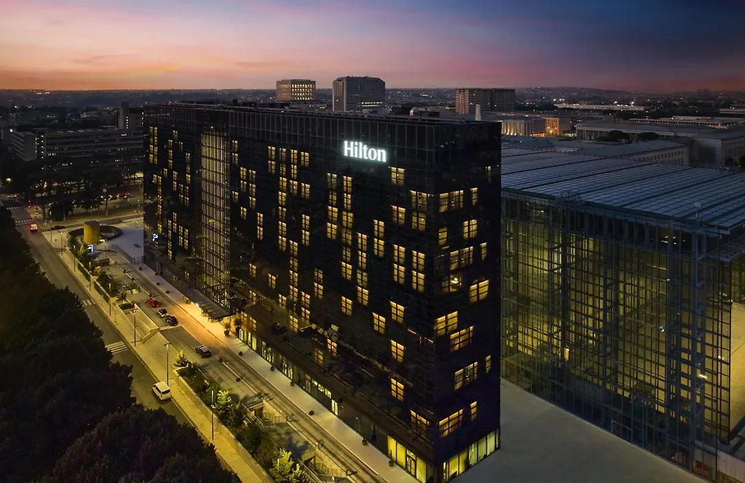 Hilton Rome Eur La Lama, a 4-star hotel with an 8.6/10 Booking.com rating, features spacious guest rooms and amenities like a cocktail bar, a coffee shop, and a library bar. It is situated in a neighborhood recognized for its monumental Fascist-era architecture, making it a notable accommodation option.