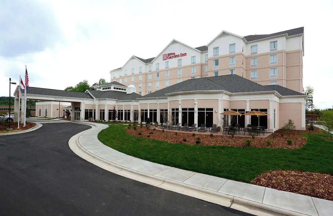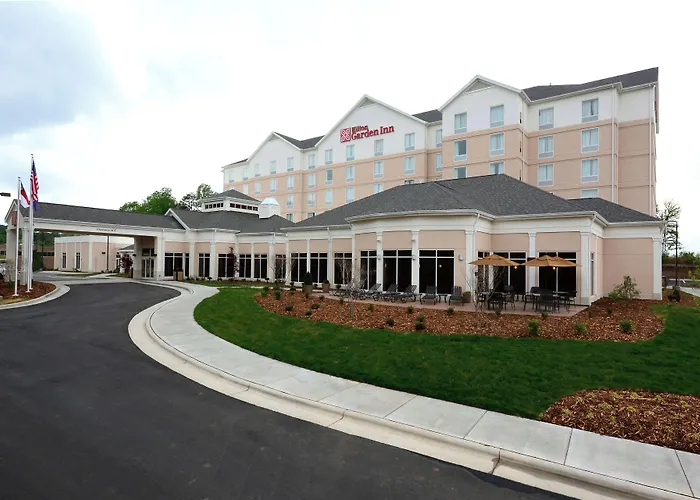 Hilton Garden Inn Greensboro Airport is a 3-star hotel with a 9.1/10 rating on Booking.com, featuring complimentary airport shuttle service and an extensive fitness center. Amenities include a large indoor pool and a Garden Grille Restaurant & Bar serving American fare for breakfast and dinner.