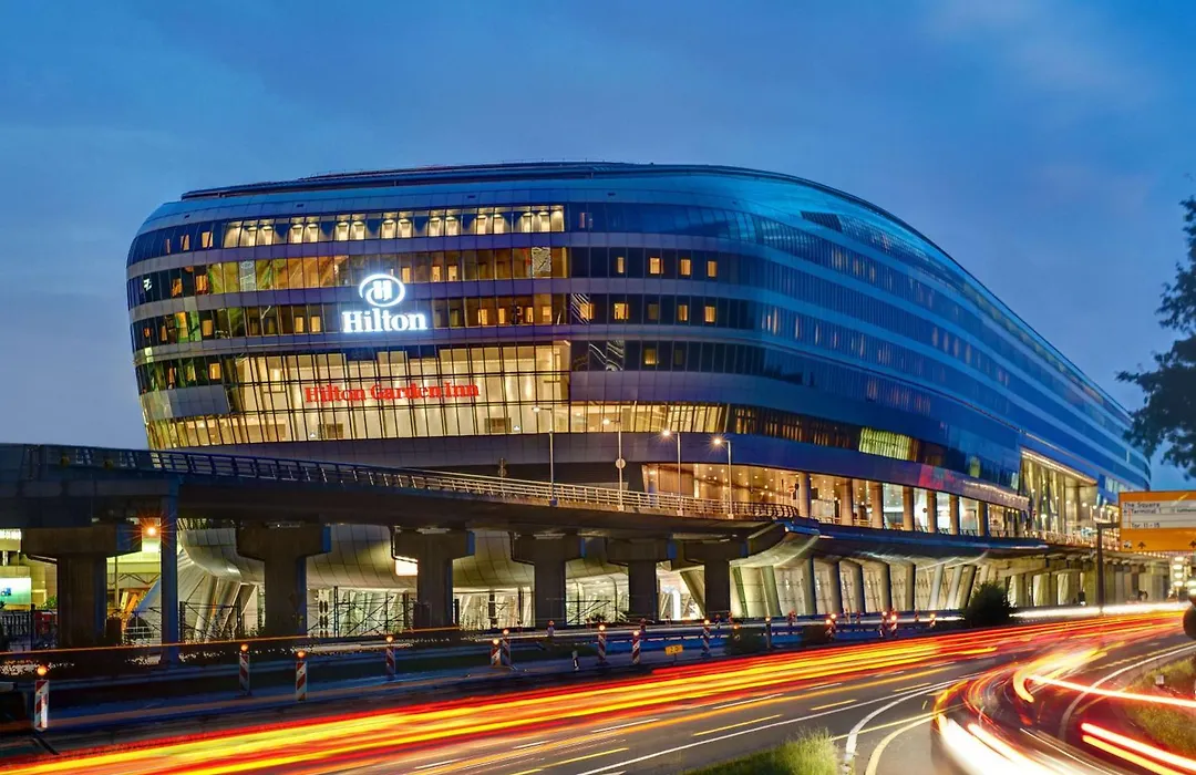 Hilton Garden Inn Frankfurt Airport offers a 4-star experience directly above the train station with a connection to the airport via pedestrian bridge. Amenities include a 24-hour fitness center, restaurant with show kitchen, and a business center. This family-friendly hotel is located in the iconic The Squaire building.