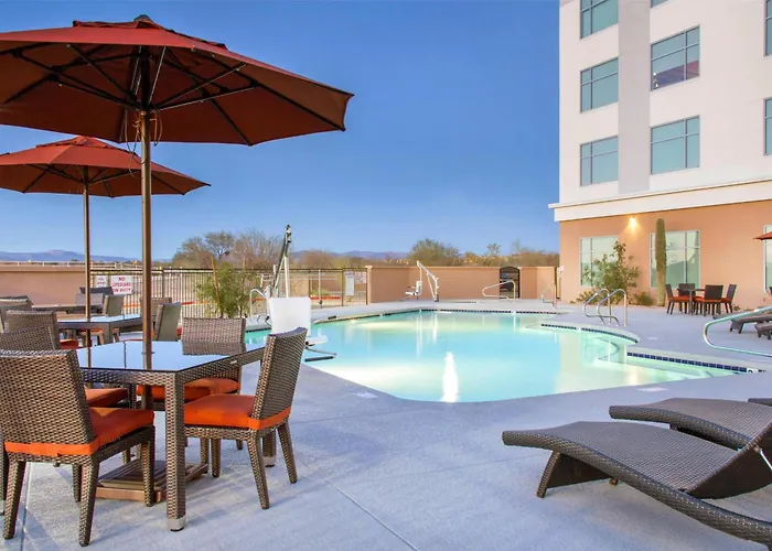 Leisure amenities include an outdoor pool, fitness center, and hot tub. Guests can also enjoy nearby activities such as hiking at Quartz Ridge and visits to the Musical Instrument Museum, located just 0.5 miles away.