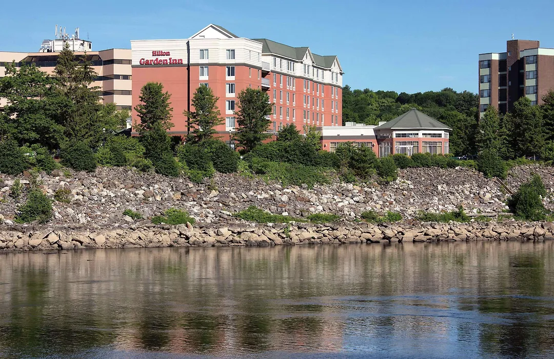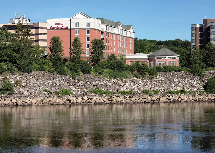 Rooms at Hilton Garden Inn Auburn Riverwatch include 138 air-conditioned units equipped with microwaves, refrigerators, and complimentary Wi-Fi. Some rooms feature views of the Androscoggin River, and suites offer additional seating areas and wall beds for space-saving.