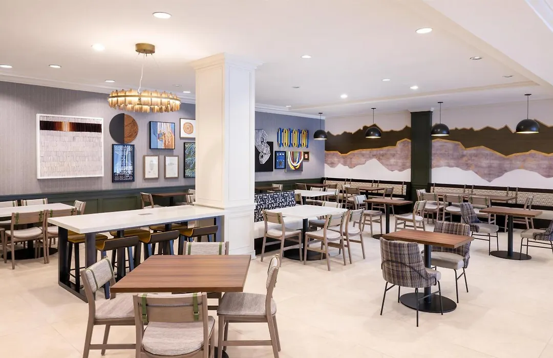 Dining options include the Garden Grille & Bar, which serves a full hot buffet breakfast with made-to-order options such as omelets, pancakes, and evening favorites like the Mobley burger and New York Strip of Flat Iron. Room service is available for added convenience.