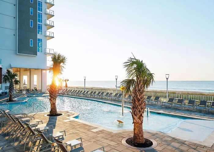 Hilton Grand Vacations Club Ocean Enclave Myrtle Beach features a beachfront location with easy access to the Atlantic Ocean and Myrtle Beach Boardwalk. This 3-star hotel offers a range of amenities, including a fitness center, two outdoor swimming pools, and family-friendly accommodations.