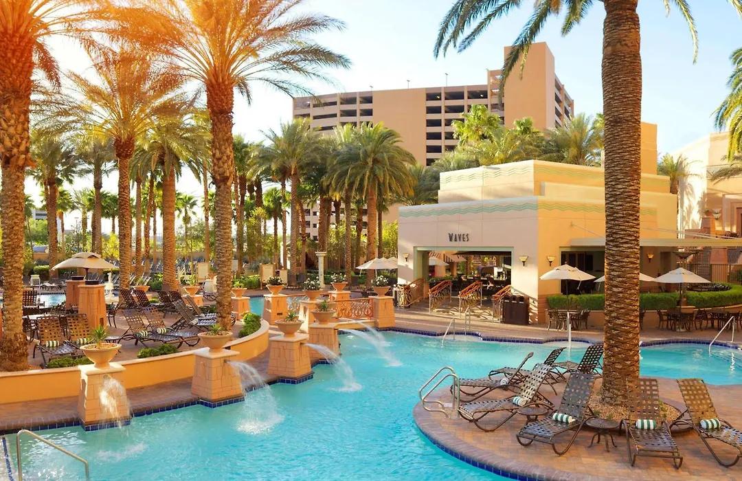 Hilton Grand Vacations Club On The Las Vegas Strip is a 4-star non-gaming resort with notable amenities, including a heated outdoor pool and an eforea Spa. This Las Vegas hotel spans 10 acres, showcasing Desert Deco design complemented by the vibrant energy of The Strip.