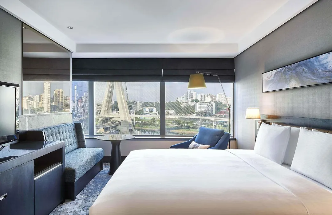 Rooms at Hilton Sao Paulo Morumbi are equipped with flat-screen TVs, minibars, work desks, and comfortable beds. Some rooms provide views of the Estaiada Bridge, with access to the Executive Lounge where guests can enjoy exclusive breakfast and happy hour services. The hotel also offers pet-friendly rooms.