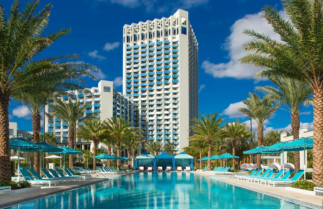 Hilton Orlando Buena Vista Palace - Disney Springs Area (4-star, 8.2/10 on Booking.com) features spacious accommodations and is steps away from Disney Springs(R). The Lake Buena Vista hotel offers a range of activities with family-friendly amenities, including a Float Lagoon and an on-site arcade.