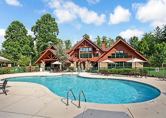 Hilton Vacation Club Bent Creek Golf Village Gatlinburg is a 3-star Pittman Center hotel featuring an 18-hole golf course designed by Gary Player and both indoor and outdoor pools. This family-friendly resort offers amenities like a game room, a playground, and a full kitchen in many accommodations.