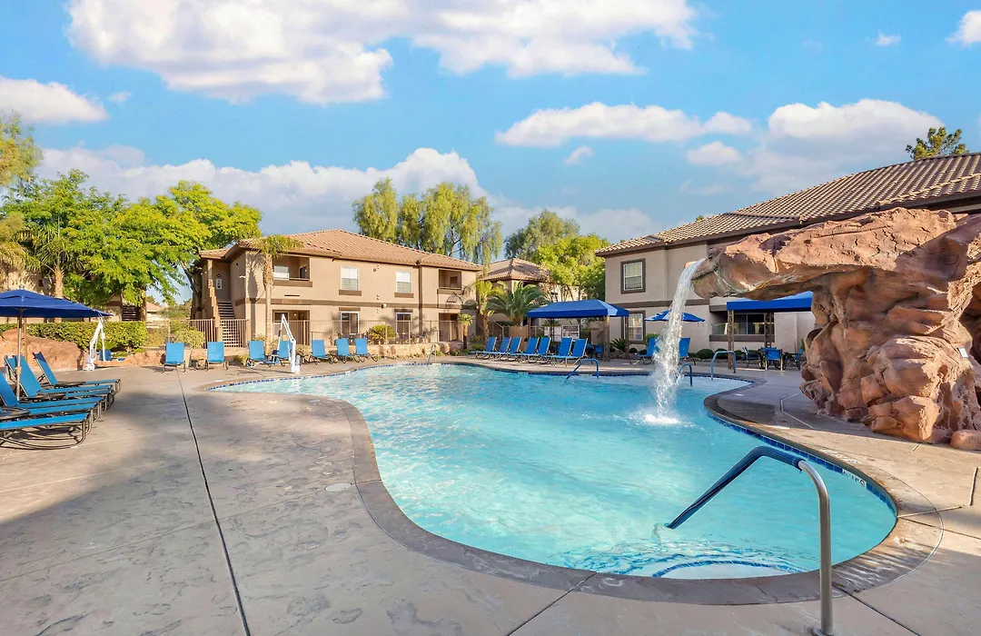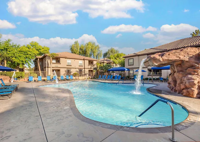 Hilton Vacation Club Desert Retreat Las Vegas is a 3-star, non-gaming hotel featuring spacious accommodations suitable for families and business travelers. Key amenities include multiple heated pools, a fitness center, and in-room laundry facilities. The hotel offers a peaceful escape with resort-style amenities just minutes from the Las Vegas Strip.