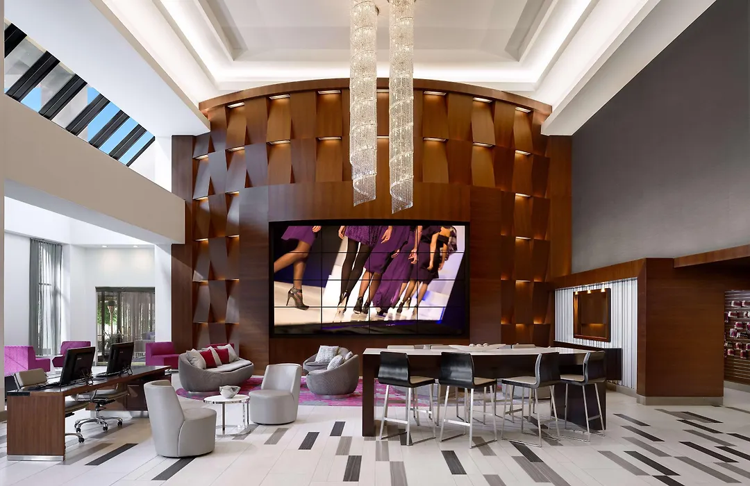 Dining at Runway includes small plates and hearty meals using locally sourced ingredients. For snacks, guests can access a 24-hour marketplace stocked with a variety of options including classic snacks and freshly made granola.