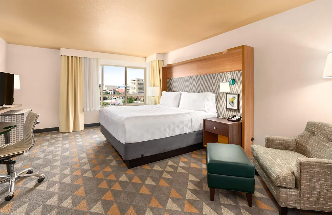 Rooms at Holiday Inn Yakima feature air conditioning, complimentary Wi-Fi, flat-screen TVs, and mini-refrigerators. The bathrooms are equipped with hair dryers and bath amenities. Accessible rooms are available, ensuring comfort for all guests.