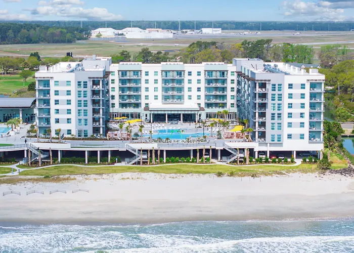 The hotel features a large oceanfront pool area, ideal for recreational activities. Family-friendly options like the Radical Ropes Adventure Park and the Myrtle Beach Boardwalk are within 0.6 miles, providing entertainment for guests of all ages.
