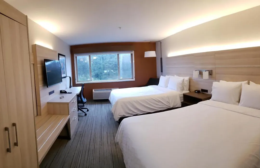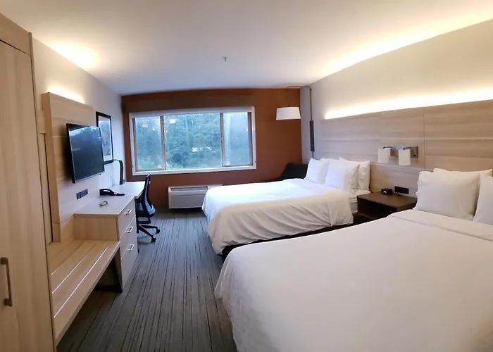 The Holiday Inn Express offers 54 air-conditioned rooms, featuring flat-screen televisions, microwaves, and refrigerators. Guests can enjoy granite countertops in bathrooms and access to bedside outlets for convenience.