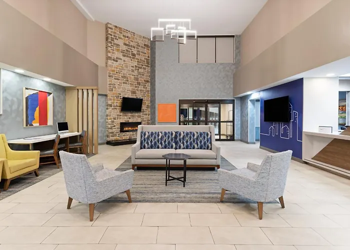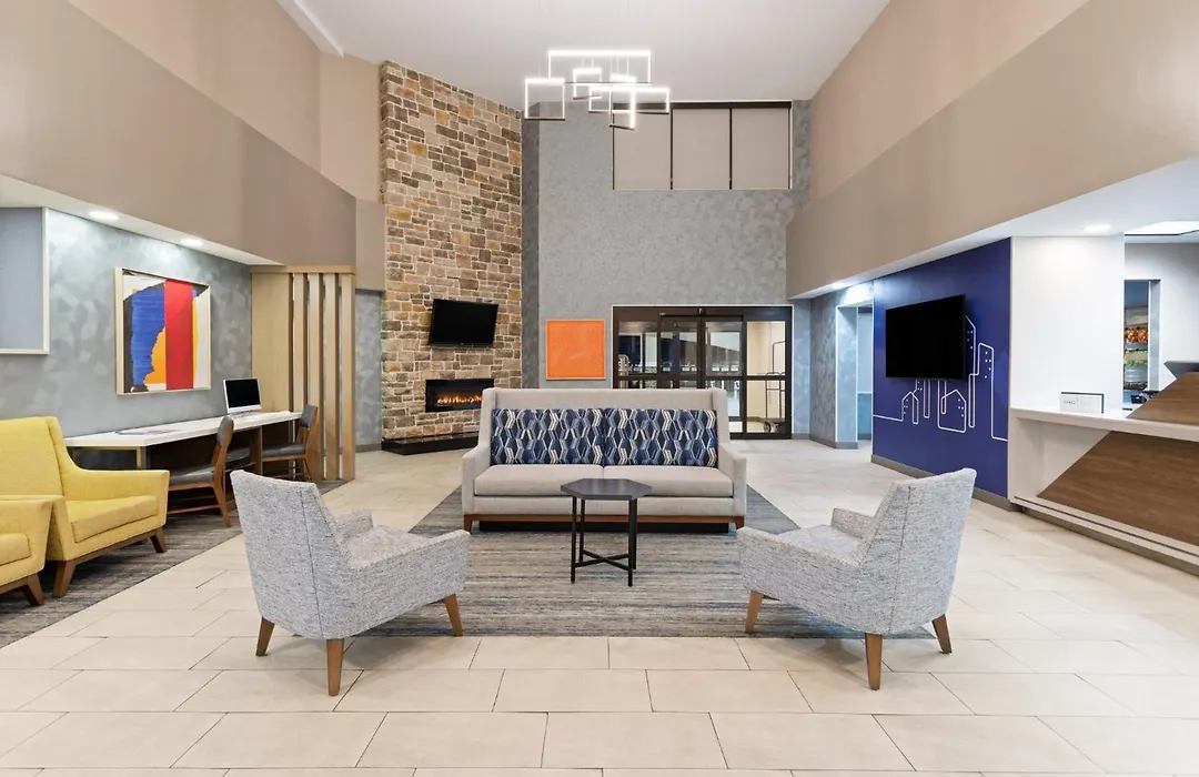 The hotel provides a free Express Start Breakfast with various items. Dining options are also available nearby, catering to a range of tastes.
