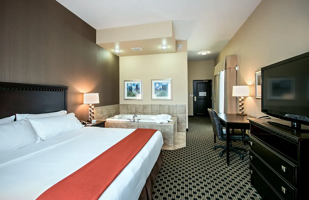 Rooms at Holiday Inn Express feature air conditioning, free Wi-Fi, and flat-panel HDTVs. Spacious layouts include a well-lit desk with an ergonomic chair, a refrigerator, and some rooms offer kitchen facilities. The property has suites with separate bedrooms and whirlpool tubs.