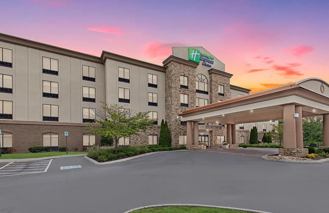 Rooms at Holiday Inn Express feature modern furnishings with flat-screen TVs, coffee makers, and spacious work desks. Suites include kitchenettes equipped with microwaves and refrigerators, accommodating both short and extended stays.