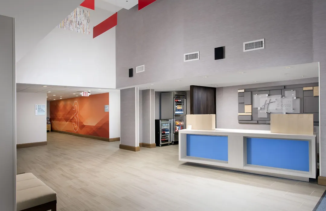 Each room at Holiday Inn Express features a work desk, in-room safe, Keurig, microwave, and mini fridge. All accommodations include complimentary WiFi and a 43" adjustable mount flat-screen TV. Guests can enjoy a choice of pancakes, eggs, breakfast meat, and signature cinnamon rolls.