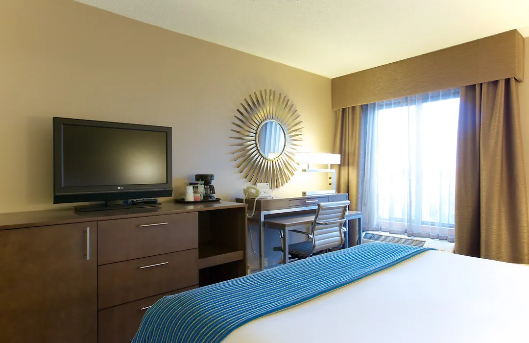 Rooms at Holiday Inn Express Fargo - West Acres feature modern amenities including in-room refrigerators, Keurig coffee makers, and flat-screen TVs. The hotel offers connecting rooms and a variety of pillow options to enhance guest comfort.