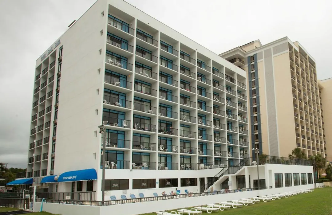 Holiday Sands South, a 3-star Myrtle Beach hotel, offers family-friendly accommodations with spectacular ocean views. The property features eleven water amenities, including a lazy river, along with convenient dining options and fitness facilities.