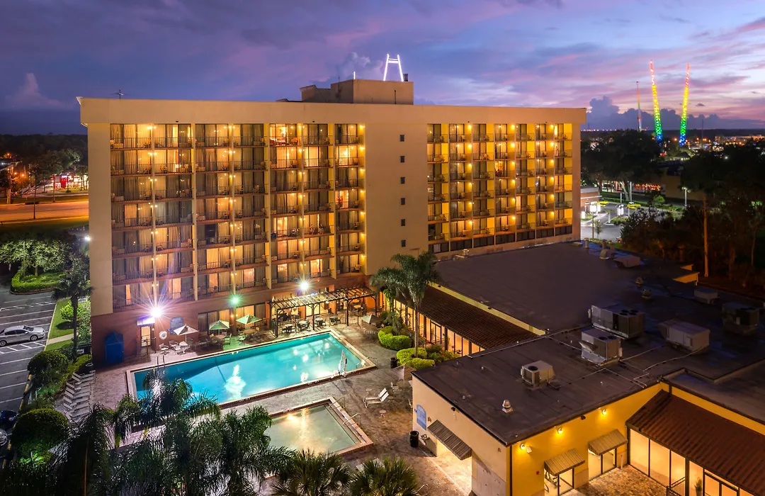The hotel features four meeting rooms, accommodating events for up to 250 attendees and supported by advanced audiovisual equipment. Guests benefit from a complimentary shuttle to major attractions like Disney World(R), Universal Orlando(R), and SeaWorld(R).