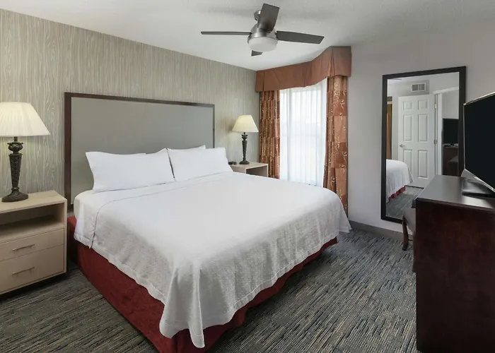 For leisure, the Homewood Suites offers an outdoor pool, spa tub, and a fitness center. The hotel also features a meeting room with 400 square feet of space, suitable for business events. Guests can access the outdoor pool area or engage in local activities.