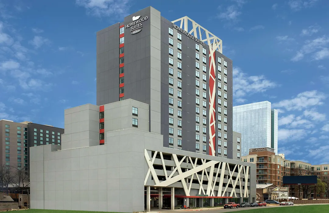 Leisure facilities at Homewood Suites include a 24-hour fitness center and an outdoor rooftop pool, providing options for exercise and relaxation. The hotel is situated in an entertainment district, with the famous 6th Street just a mile away, offering various activities and events.