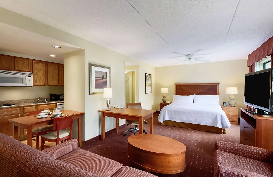 The Homewood Suites offers a state-of-the-art business center with express check-out. Meeting facilities are available for events accommodating up to 35 attendees, making it suitable for both business and leisure travelers.