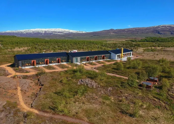 Hotel 1001 Nott, a family-owned luxury hotel rated 9.2/10 on Booking.com, is beautifully situated in a quiet area by Lake Lagarfljót, featuring facilities such as outdoor hot tubs and a restaurant with panoramic views. This 3-star Egilsstaðir hotel emphasizes comfort and nature.