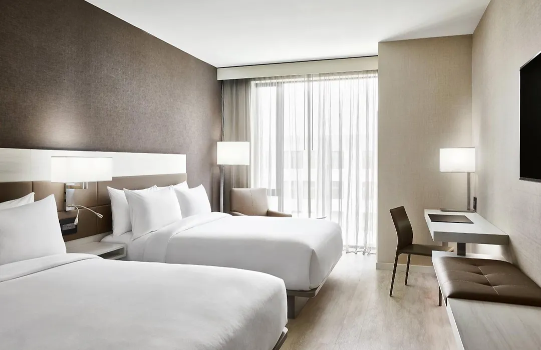 The AC Kitchen serves a European-inspired breakfast featuring freshly baked croissants, sliced prosciutto, and savory breakfast tarts. Guests can also enjoy the AC Lounge, a Spanish restaurant offering a tapas menu and craft cocktails.