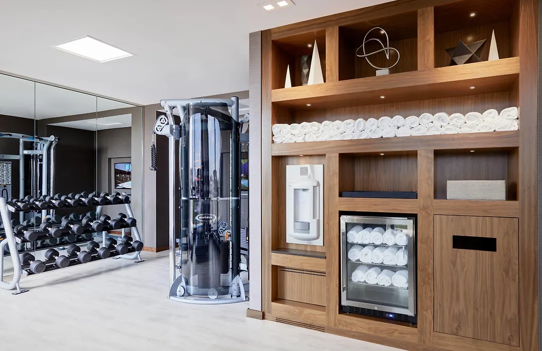 The hotel provides a fitness center equipped with cardiovascular machines and free weights. Additional amenities include a convenience store and meeting spaces accommodating up to 64 attendees.