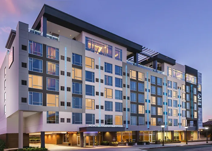 AC Hotel By Marriott Raleigh Downtown is a 3.5-star hotel situated in the business district, rated 8.8/10 on Booking.com. The hotel features amenities such as a rooftop bar, coffee shop, and a modern design tailored for business travelers.