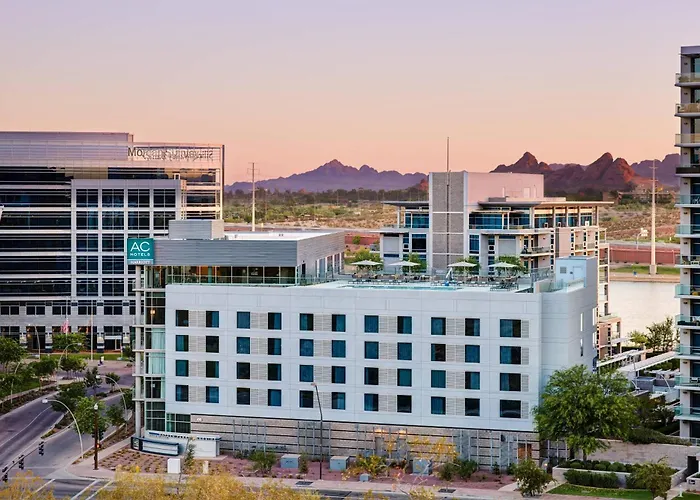 AC Hotel By Marriott Phoenix Tempe/Downtown features a picturesque lakefront location and upscale accommodations with minimal design. This 4-star Tempe hotel offers a rooftop pool, a 24-hour fitness center, and a restaurant serving European-inspired breakfast options.