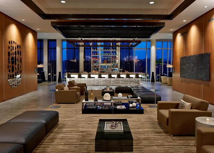 AC Hotel Columbus Dublin, a 4-star hotel rated 9.1/10 on Booking.com, features modern amenities including a rooftop restaurant, VASO, and a well-equipped fitness center with stunning views. Its location in the energetic Bridge Park area offers easy access to local restaurants and nightlife.