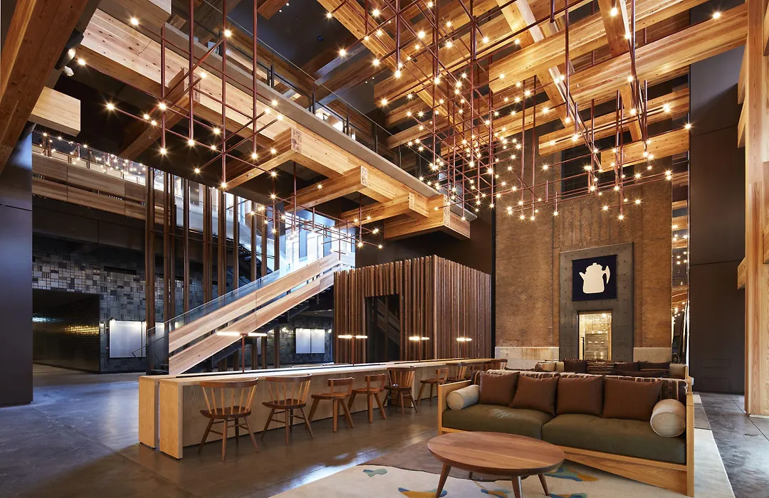 Ace Hotel Kyoto (5-star, 9.2/10 Booking.com rating) captures the blend of historical and contemporary design in a landmark 1926 building by Tetsuro Yoshida. This Kyoto hotel features three restaurants, the first Stumptown Coffee Roasters in Japan, and a verdant courtyard garden.