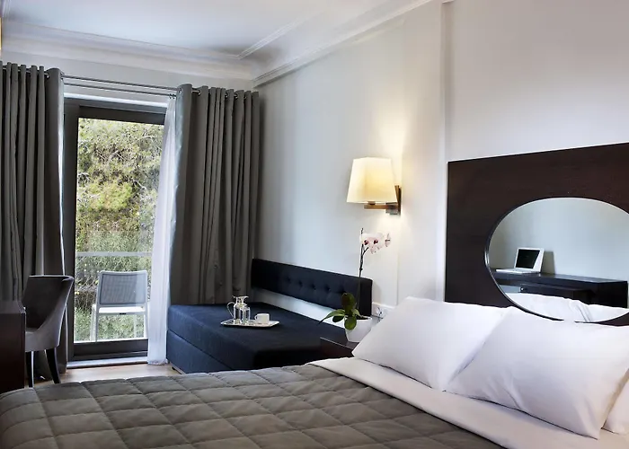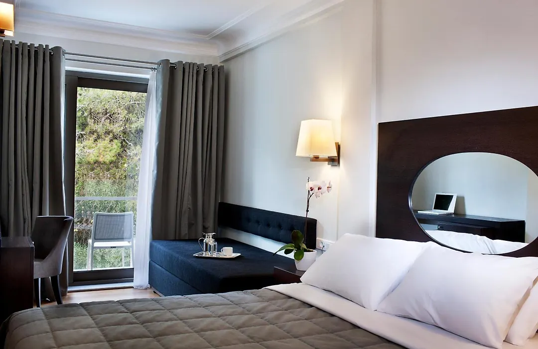 A rich breakfast buffet, certified for its Greek offerings, is served each morning by the outdoor swimming pool. The hotel bar provides refreshing drinks and light snacks in an urban chic lounge setting, ideal for unwinding after a day of exploration.