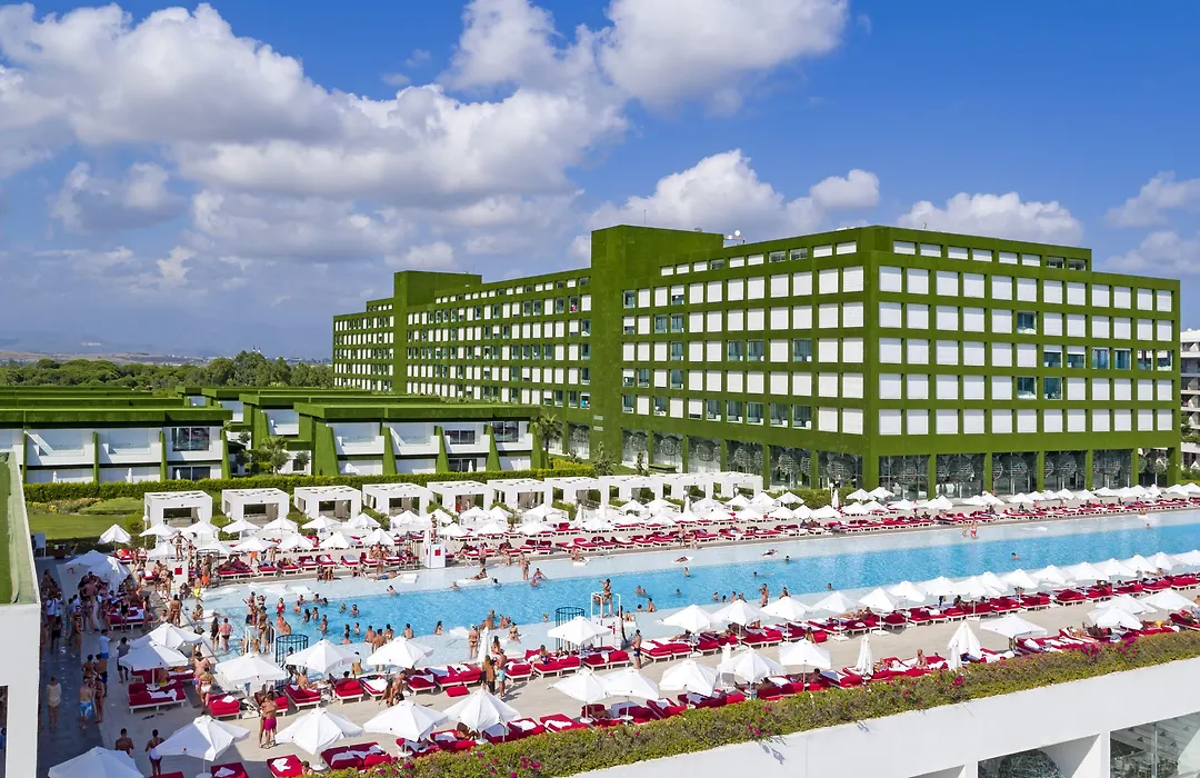The hotel features a game room with space-age design details, as well as a shopping area with various stores. Nearby landmarks include Belek Hamam and Titanic Golf Club, both located within 1.2 miles. Convenient access to the region is provided through local transport options.