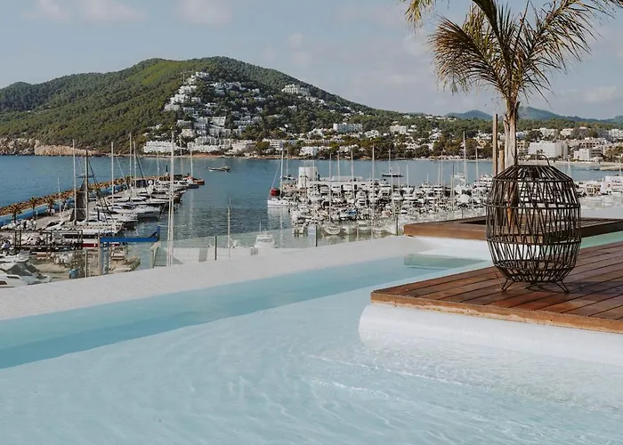 Aguas De Ibiza Grand Luxe Hotel - Small Luxury Hotel Of The World offers a serene eco-luxury experience with stunning Mediterranean views, highlighting its impressive amenities, including three outdoor pools, a full-service Revival Spa, and an exquisite dining selection. This 5-star Santa Eularia des Riu hotel features a contemporary design that integrates natural elements throughout its spaces.
