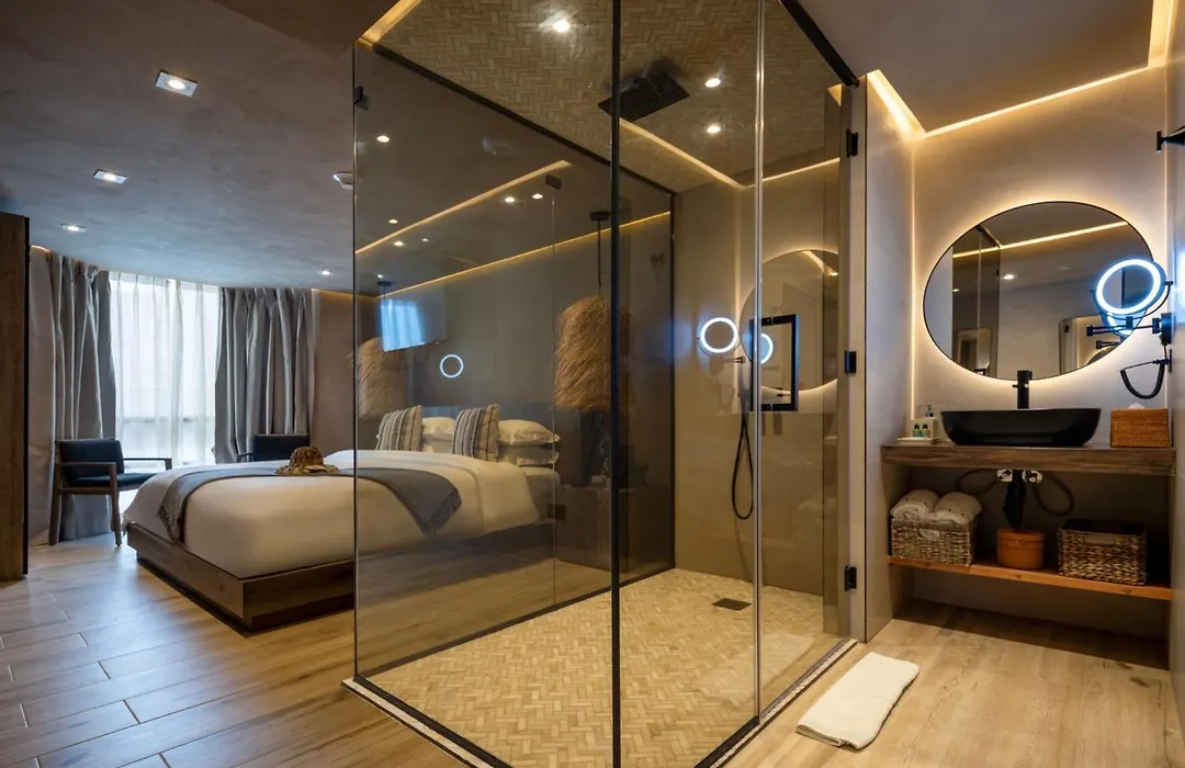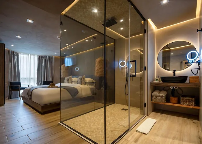 Rooms at Aire De Olive include stylish designs with air conditioning, flat-screen TVs, and minibars. Some suites feature private balconies with sea views, while amenities such as free Wi-Fi and coffee machines are standard.