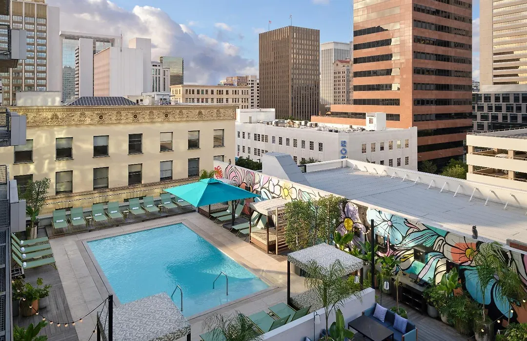 The on-site restaurant, Leave of Absence, serves a menu crafted with local ingredients, highlighting wood-fired pizzas and creative cocktails. Guests can also enjoy a casual atmosphere at the rooftop pool deck, which offers stunning views of downtown San Diego.