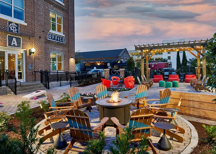 Rooms at Aloft Wilmington boast a loft-inspired design, featuring plush bedding, flat panel TVs, and rainfall showerheads. Certain units provide balconies with city views, enhancing guests' experience. Other amenities include a 24-hour gym for fitness enthusiasts.