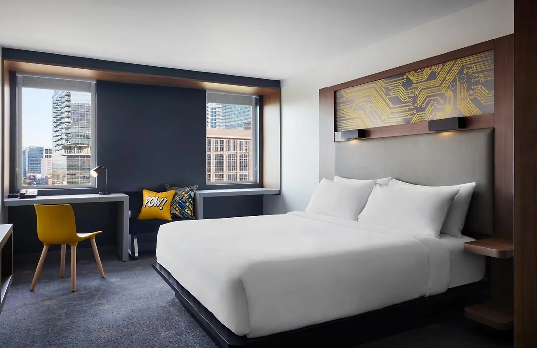 Aloft Atlanta Downtown, a 4-star hotel with a 7.6/10 rating, features an outdoor pool and a vibrant bar atmosphere. This hotel embraces a modern design with tech-forward amenities suitable for leisure and business visitors.