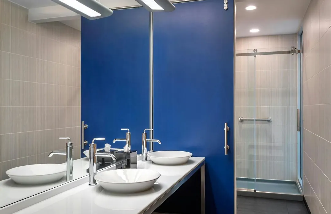 Guest rooms at Aloft Mount Laurel are equipped with premium bedding, flat-panel smart TVs, mini-refrigerators, and free WiFi. The hotel also welcomes up to two dogs per room, making it a pet-friendly option.