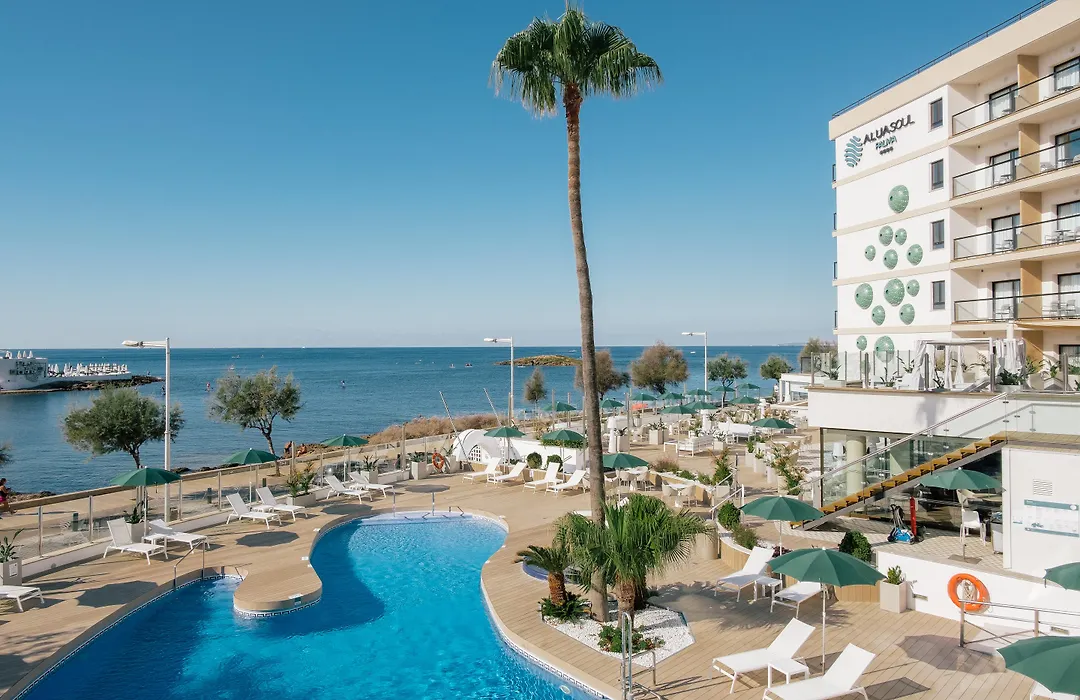 Aluasoul Palma Hotel Adults Only, a 4-star hotel rated 8.7/10 on Booking.com, is positioned on Cala Estancia Beach with views of Palma Bay. This adults-only hotel features a restaurant serving Mediterranean and international cuisine, a fitness center, sauna, and an outdoor pool with a sun terrace.